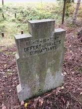 Situé rue de Jolimont, 5600 Romedenne. Cette plaque de marbre se trouve à gauche du calvaire (très abîmé) au fond de la rue principale du cimetière. Une très belle plaque en marbre blanc gravée d'une inscription et ornée d'un feuillage qui rappelle le décès de deux soldats romedennois AUGUSTE PIROT ET JEAN FOCQUET morts pour la patrie et en hommage également aux soldats belges et français tombés en 1914. Créée en reconnaissance aux deux soldats de Romedenne tombés au champ d'honneur,lors de la guerre 14-18, ainsi qu'aux soldats belges et français. Profondeur:2cm, Largeur:85cm, Hauteur:68cm. Inscriptions : RECONNAISSANCE ETERNELLE AUX DEUX ENFANTS DE ROMEDENNE MORTS AU CHAMP D'HONNEUR AUGUSTE PIROT 5 FEVRIER 1915 JEAN FOCQUET 19 OCTOBRE 1918 ET AUX SOLDATS BELGES ET FRANCAIS TOMBES SUR ...