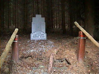 Situé le long de la Nationale 40, à 700 m de la Barrière de Romedenne, à droite en allant vers Doische. La stèle a besoin d'être refixée dans le sol car elle est instable, ainsi que les poteaux qui indiquent l'endroit. Le 12 août 1942, à 0h15, la chasse de nuit allemande abat un avion anglais Stirling de la 15ème escadrille qui effectue une attaque sur Mayence.. Le sergent mécanicien P.D.GOODBOURNE saute en parachute et s'échappe. Les six autres hommes d'équipage sont tués. Leurs corps reposent au cimetière communal de Gosselies. Une stèle en leur mémoire fut érigée après la guerre le long de la RN 40, à 700 m de la barrière de Romedenne (extr.de"Les monuments aux Morts de l'entité de PHILIPPEVILLE". André Lépine, 2002, p.10.).