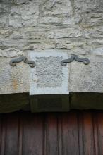 Situé rue Ernest Lahaye 2. Maison avec linteau millésimé du 18 ème siècle. Ecu daté 1733 avec un monogramme IHS dont le H est surmonté d’une croix. Ouverture permettant d’entrer ou de sortir d’un lieu fermé. IHS 1733. Profondeur:1cm, Largeur:127cm, Hauteur:200cm. Porte intérieur : largeur 93 cm / hauteur 173 cm Porte extérieur : largeur 127 cm / hauteur 200 cm Linteau : longueur : 127 cm / hauteur 25 cm Ecu : largeur : 19 cm / hauteur 20 cm. Ici, la porte est condamnée et rebouchée au minimum depuis plus de nonante ans. La formule "Jésus Sauveur des Hommes" en latin "Iesus hominum salvator" résumée par les trois lettres IHS se retrouve sur cet écu.