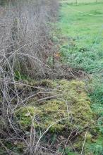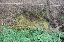 Situé Le Bosquet – Pré de Minveaux. Dans un bosquet à la limite d’une pâture, sur le ruisseau du petit moulin de Samart à proximité du chemin No 28. En aval, à environ 300 mètres à l’Est-Sud-Est, se situe l’ancienne scierie de Samart. Ancien emplacement d’une vanne de retenue d’eau. Régulation du niveau de l’eau pour la roue à aube de l’ancienne scierie. Espace entre les montants : 160 cm Surface des 2 pierres dans l’eau : 160 X 120 cm. Structure en piere bleue. Le moulin a été construit avant 1800. Ne subsiste que la base en pierre bleue, les montants ne sont plus apparents. Certaines pierres de l’ouvrage se retrouvent en contrebas dans le ruisseau.