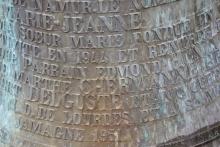 Situé à gauche de la nouvlle église. Monument en pierre bleue dont les 4 faces font l'objet d'inscription. Attribué à Eugène Biston, les pierres étaient situées dans l'ancien cimetière de l'église de Jamagne, déplacement après destruction et installation à gauche de la nouvelle église en 2011. nettoyage pour mettre en évidence les textes.