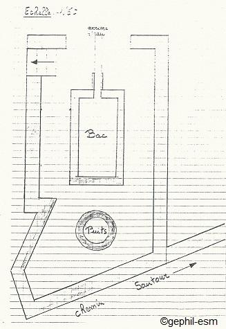 Superficie adastrale: 01 are 90 ca. Lieudit la plante. Mur d'anceinte en pierres du pays. Ces murs sont surmontés de pierre bleues ou de dalles de béton. Puits de 1,60 de diamètre extérieur avec margelle en pierre. Bac de réception de 1,3 X 2,9 intérieur avec bords en pierres bleues. Canal d'adduction d'eau en partie en pierre bleue. Le sol est bétonné.