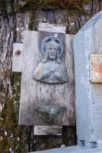 Situé au fond de la rue de l'azeille, Chêne séculaire portant une statuette dans une niche. Dit : Chêne Marie Madeleine. L ensemble est peint en blanc.La statuette a été gratée au visage. L'ensemble devrait être repeint