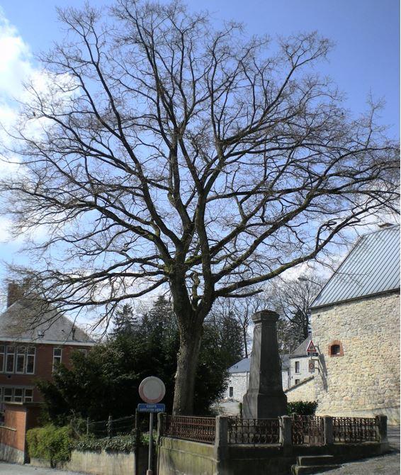 Chêne pédonculé (Quercus Robur) situé face à l'église Saintt-Nicolas derrière le monument.