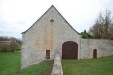 Situé rue Ernest Lahaye. Portail en pierre bleue de grange surbaissé et harpé dont la clé de voute porte la date de 1738. Ouverture permettant d’entrer ou de sortir d’un lieu fermé. Profondeur:1cm, Largeur:356cm, Hauteur:408cm. Le pignon de l’ancienne grange du château se trouve sur la façade Est devant une pelouse. A gauche du portail, un mur de séparation du domaine public avec le domaine privé et une porte donnant accès à la prairie. A droite, une petite tourelle semi-circulaire ainsi qu’une porte dans le mur du jardin. Au-dessus du pignon, un œil-de-bœuf.