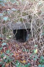 Situé Bois Corroy. Construction en briques partiellement enterrée avec une voûte également en briques. Au sein d’un petit massif forestier, la poudrière est envahie de ronces. Un couloir d’accès semble avoir été creusé pour y accéder et un grand chêne a poussé à droite de l’entrée. A l’intérieur, il reste du plafonnage sur les parois et le sol est en terre battue. Le linteau de la porte d’entrée est en marbre rouge. Endroit où l’on entreposait les explosifs de l’ancienne carrière de marbre. Profondeur:140cm, Largeur:140cm, Hauteur:155cm. Intérieur 140 cm sur 140 cm / voûte à 155 cm / porte d’entrée 100 cm sur 100 cm. Linteau : Longueur :136 cm / Hauteur : 24 cm/ Profondeur : 35 cm. L’exploitation de la carrière a été fermée au début du XX ème siècle. Plusieurs briques sont tombées de la ...