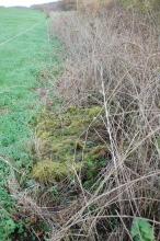 Situé Le Bosquet – Pré de Minveaux. Dans un bosquet à la limite d’une pâture, sur le ruisseau du petit moulin de Samart à proximité du chemin No 28. En aval, à environ 300 mètres à l’Est-Sud-Est, se situe l’ancienne scierie de Samart. Ancien emplacement d’une vanne de retenue d’eau. Régulation du niveau de l’eau pour la roue à aube de l’ancienne scierie. Espace entre les montants : 160 cm Surface des 2 pierres dans l’eau : 160 X 120 cm. Structure en piere bleue. Le moulin a été construit avant 1800. Ne subsiste que la base en pierre bleue, les montants ne sont plus apparents. Certaines pierres de l’ouvrage se retrouvent en contrebas dans le ruisseau.