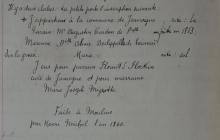 Situé rue d'amérique. Dans un mur maison famille fobelets. Insertion dans le mur de la maison d'une ancienne croix en pierre bleue avec l'inscription 1707 notre dame de grâce priez pour nous. longueur 47 cm sur le haut largeur de 19 cm, au centre 35 cm en bas 43 cm. Plusieurs hypothèses *le mur de la maison est situé aux abords de l'église saint Martin de JAMAGNE dont la première église date du 11ème siècle, la seconde date de 1770 il est probable que la croix insérée dans le mur est une récupération d'une croix proche de l'ancienne église *date de décès de vauban* lié au culte de notre dame des grâce, processions , pour éloigner le fléau de la peste.